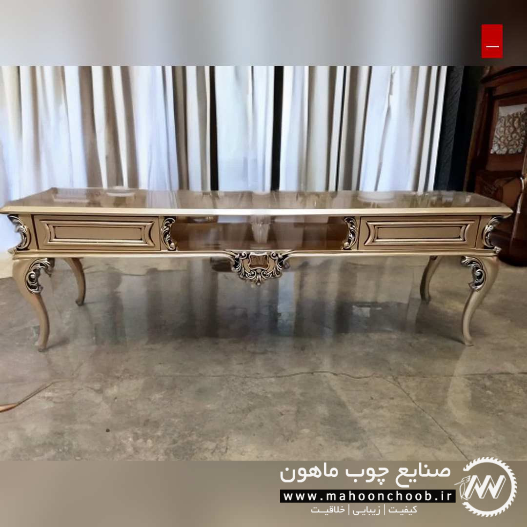 میز تلویزیون سلطنتی اکثرا با منبتکاریهای شلوغ و رنگهای لوکس مثل سفید و طلایی تولید می شوند.